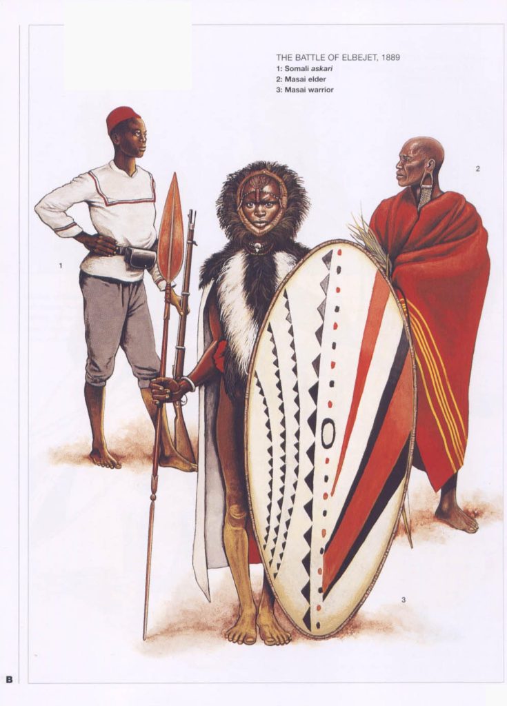 ‘The Maasai knows how to protect himself from the first shot by throwing himself on the ground, or sheltering behind a tree; and long before the muzzle-loader has been made ready for a second discharge, he has come bounding up to finish the matter with a thrust of his lance.’