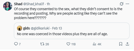 Kenyan influencers and celebrities also weighed in. One popular influencer, Easter Kojwang, bluntly blamed Kenyan men for failing to protect their women. She argued that if this had happened in neighboring countries, local men would have immediately had the perpetrator caught, but “Kenyan brothers were busy shifting blame and castigating the women. Hold that man accountable,” she demanded. Her comments sparked fierce debate – some agreed that Kenyan men should have done more, while others (mostly men) bristled at being assigned blame for women’s choices. The divide in responses was telling. A segment of (male) commenters instead chose to shame the women involved, calling them “loose” or greedy. For instance, one user scoffed, “The Russian guy is wrong for recording without their consent, but women, too, should change their ways and character.” Another cynically asked, “What crime did he commit?” – implying the women got what they signed up for. These reactions expose a vein of victim-blaming and misogyny that unfortunately often surfaces in discussions of sexual exploitation.